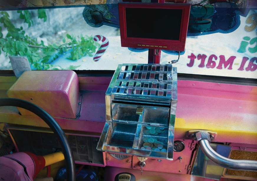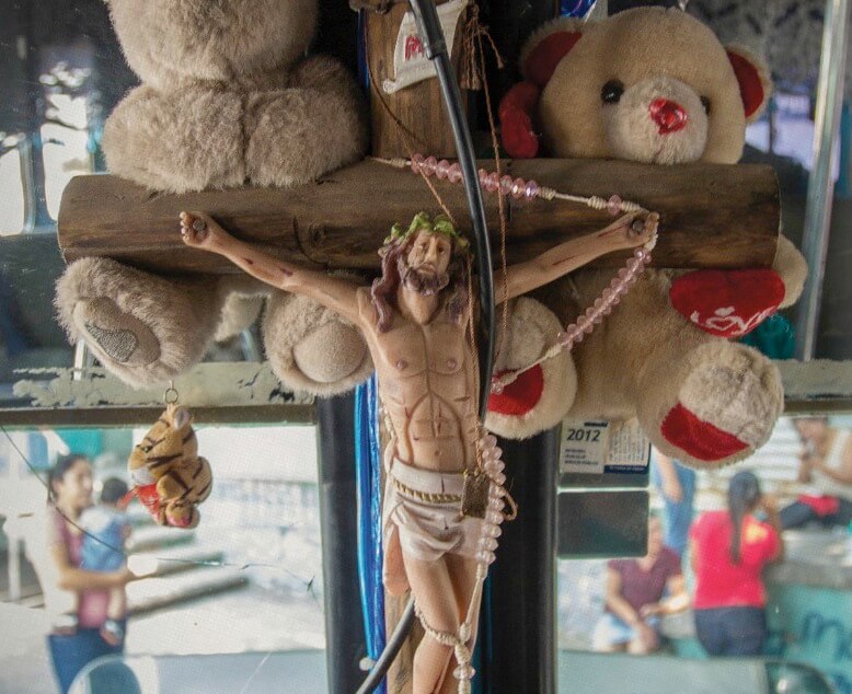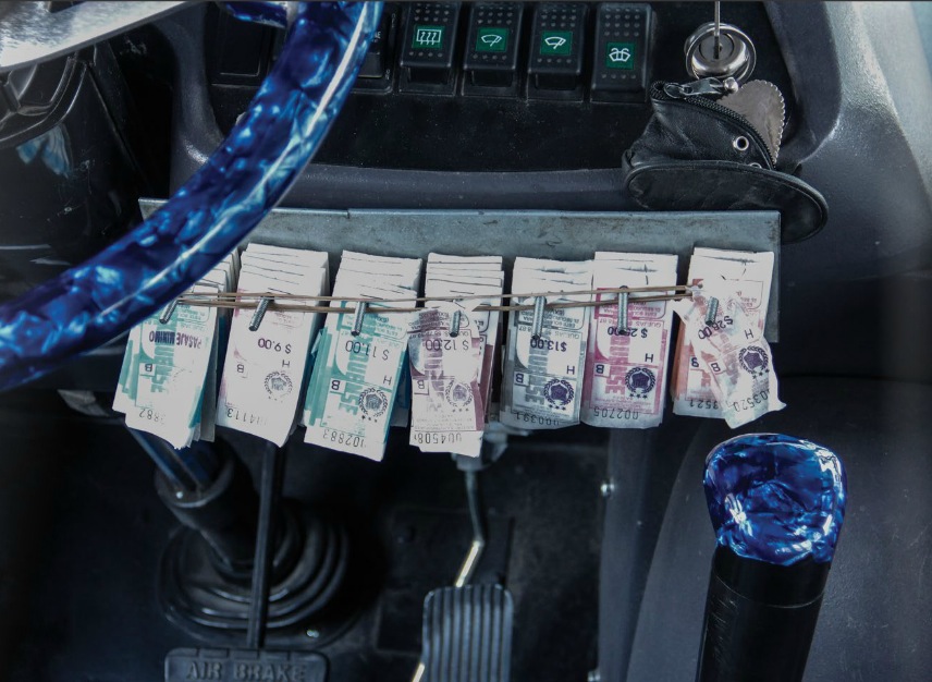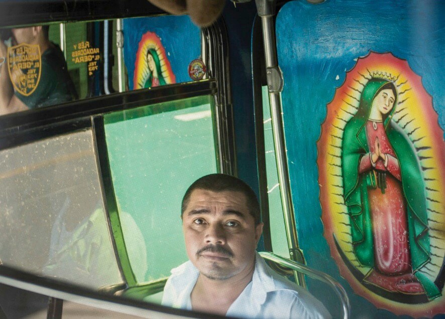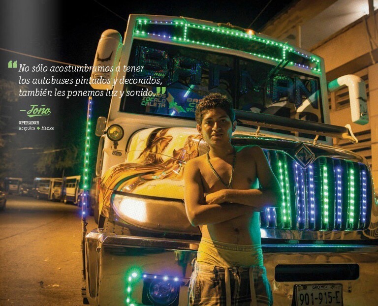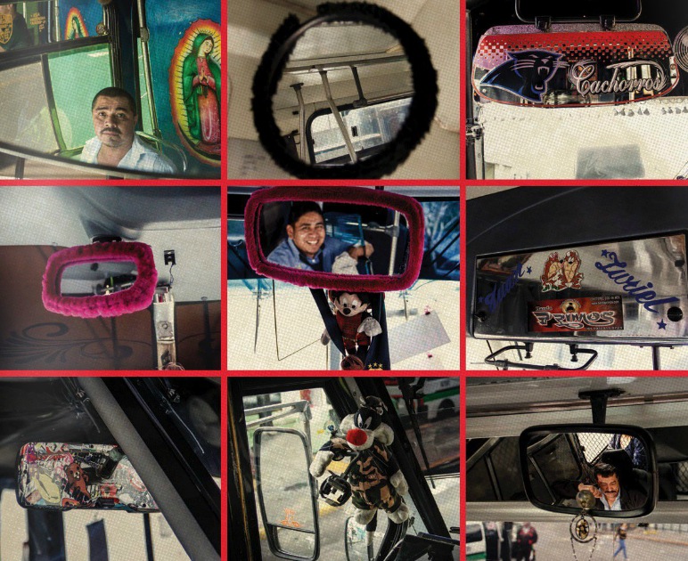 No solamente se muestran a los choferes, sino toda la gente que está alrededor del transporte público como la gente que limpia, los boleros y mecánicos, pero lo que resalta es la decoración interna de las unidades como texturas, patrones, personajes, objetos, calcomanías e inclusive altares.
