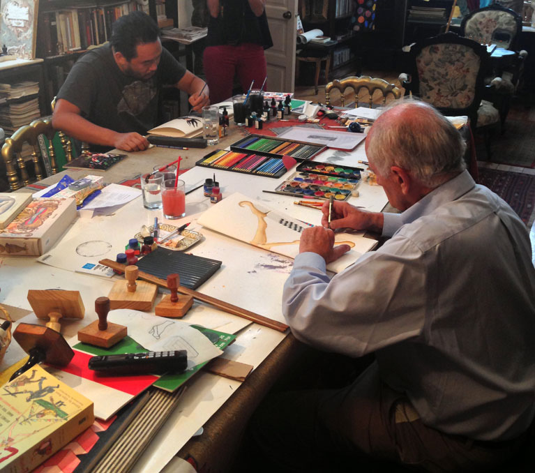 De este improbable encuentro quedó un registro fantástico: 4 cadáveres exquisitos. Como buenos surrealistas, Choe y el artista mexicano no pudieron evitar jugar el clásico juego de los veintes. Si nunca lo has jugado, tienes que intentarlo, porque los resultados dejan preciosas pistas sobre lo que hay en tus entrañas.