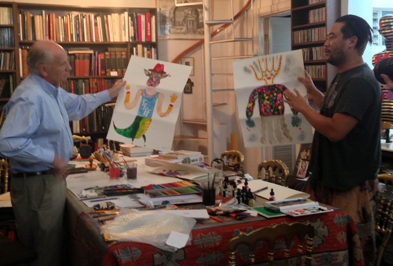 Aunque una de sus movidas más divertidas fue reunirse con el último surrealista vivo del país: el artista mexicano Pedro Friedeberg, conocido por sus increíbles pinturas y magníficas piezas de diseño (entre ellas, la icónica “Mano-Silla”). Friedeberg trabajó de cerca con otros grandes como Mathías Goeritz, Leonora Carrington y Alicia Rahon. Como Choe, se ha ganado una reputación de excéntrico por sus piezas y sus comentarios sobre el arte contemporáneo.