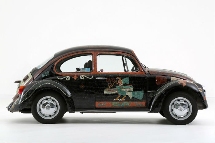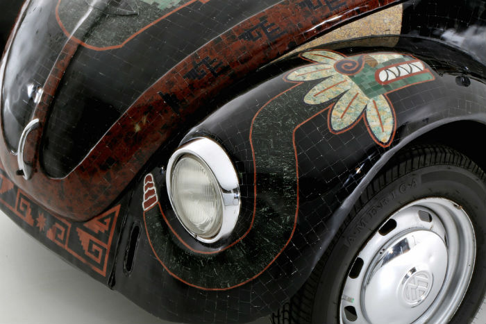 Por lo anterior no es extraño que el vocho haga mancuerna con manifestaciones artísticas mexicanas de otra índole. El “Vocho Teotihuacano” lleva hasta 9 mil 800 piedras semipreciosas, todas ellas de uso y apreciación prehispánica, como obsidiana, jade y cuarzo de aventurina, y que pesan en conjunto unos 210 kilogramos.