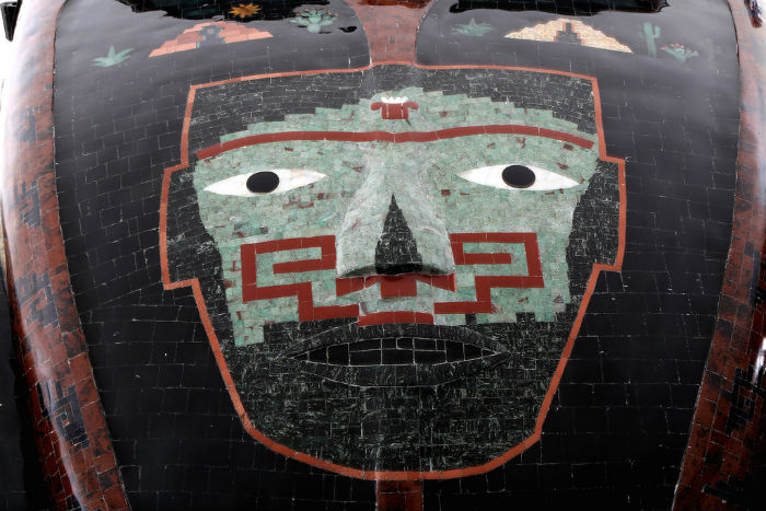 El arte de esta pieza hace alusión a la cosmovisión teotihuacana, una cultura por demás misteriosa. En la superficie las piedras dibujan, desde luego, a Quetzalcóatl, el dios bueno, la serpiente emplumada. También a Mictlantecuhtli (dios del inframundo); a las pirámides del sol y la luna, el mitológico jaguar, y vegetación del lugar como el nopal o los higos de cactus.