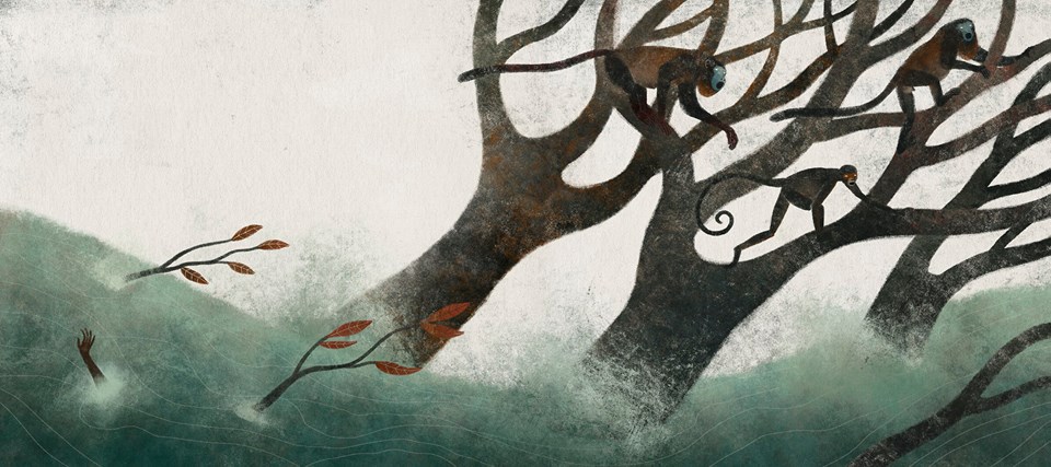 Las siguientes son parte de las ilustraciones deMonos, mensajeros del viento por las que ha recibido el premio