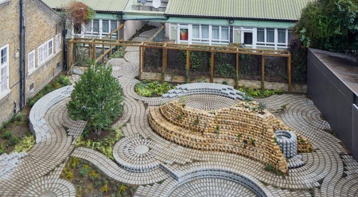 A su vez, los círculos forman una especie de salones donde otros artistas podrán intervenir con sus obras. La naturaleza, por su parte, crecerá entre las grietas y derredores haciendo una especie de público perenne que hace juego con el diseño del material, mismo que remite al edificio victoriano de la galería.