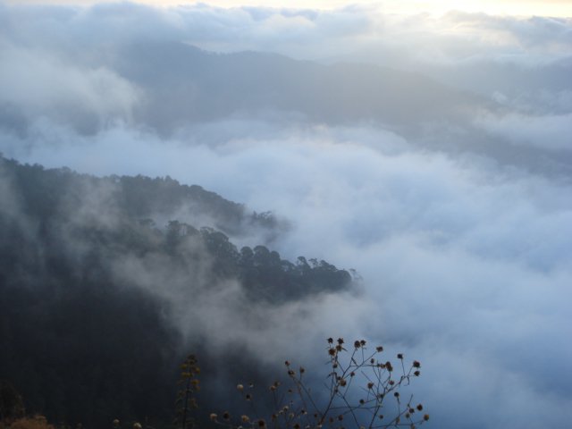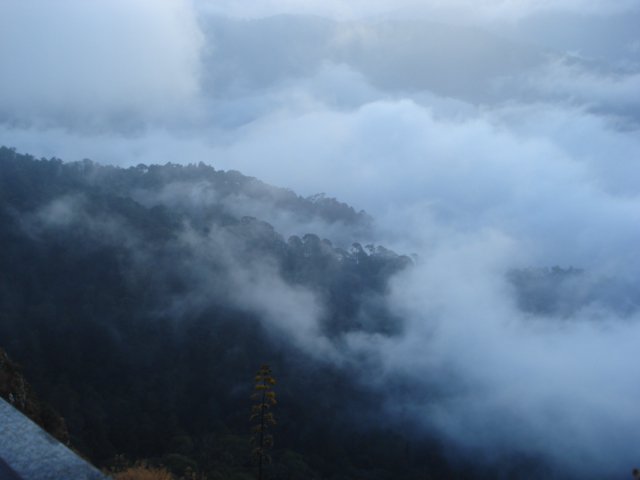 Luego llegas al mirador, donde cuando está más despejado, es posible incluso atisbar la Bahía de Banderas. Sobre todo, luego de las seis y media de la tarde, la neblina discurre como agua, y cubre el horizonte como un enorme manto; todo abajo es neblina, y tú, flotas un poco.