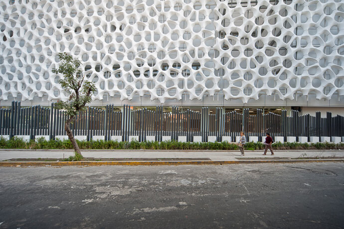La Torre de Especialidades del Hospital General Manuel Gea González de la Ciudad de México lleva un diseño que asemeja a un panal, absorbe el nitrógeno del ambiente y emite oxígeno.