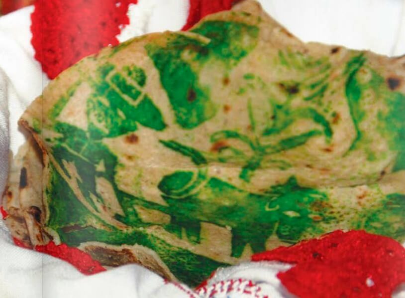 En la tortilla se imprime el dibujo del molde, y luego vuelve a integrarse al comal para terminar su cocción. La imagen es sagrada y entonces confieren un carácter ritual.
