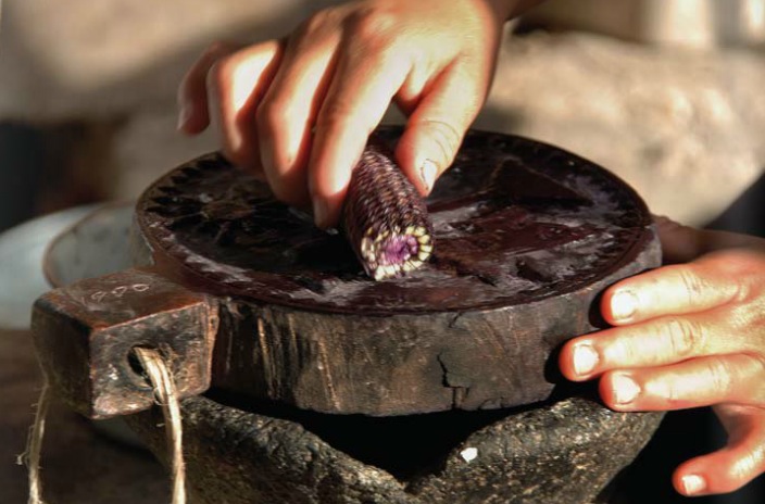 Las tortillas, a media cocción, son colocadas sobre un molde labrado sobre madera de mezquite con una imagen tallada. Previamente impregnan este sello con un pigmento natural hecho a base del muicle (planta conocida por sus propiedades medicinales y el colorido naranja de sus flores), cochinilla (insecto del cual es posible extraer un fulgurante y hermoso color rojo), entre otros pigmentos.