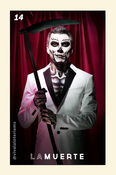 Pero lo que ya hacía falta era una lotería viva, que llevará a la dimensión del cuerpo y los objetos a estos personajes que tejen el imaginario mexicano. Con ese propósito, la artista mexicana Cuevawolf decidió reinterpretar la clásica lotería con una serie de elegantes y muy contemporáneas fotografías que llevan "a la vida" a las 54 cartas originales.