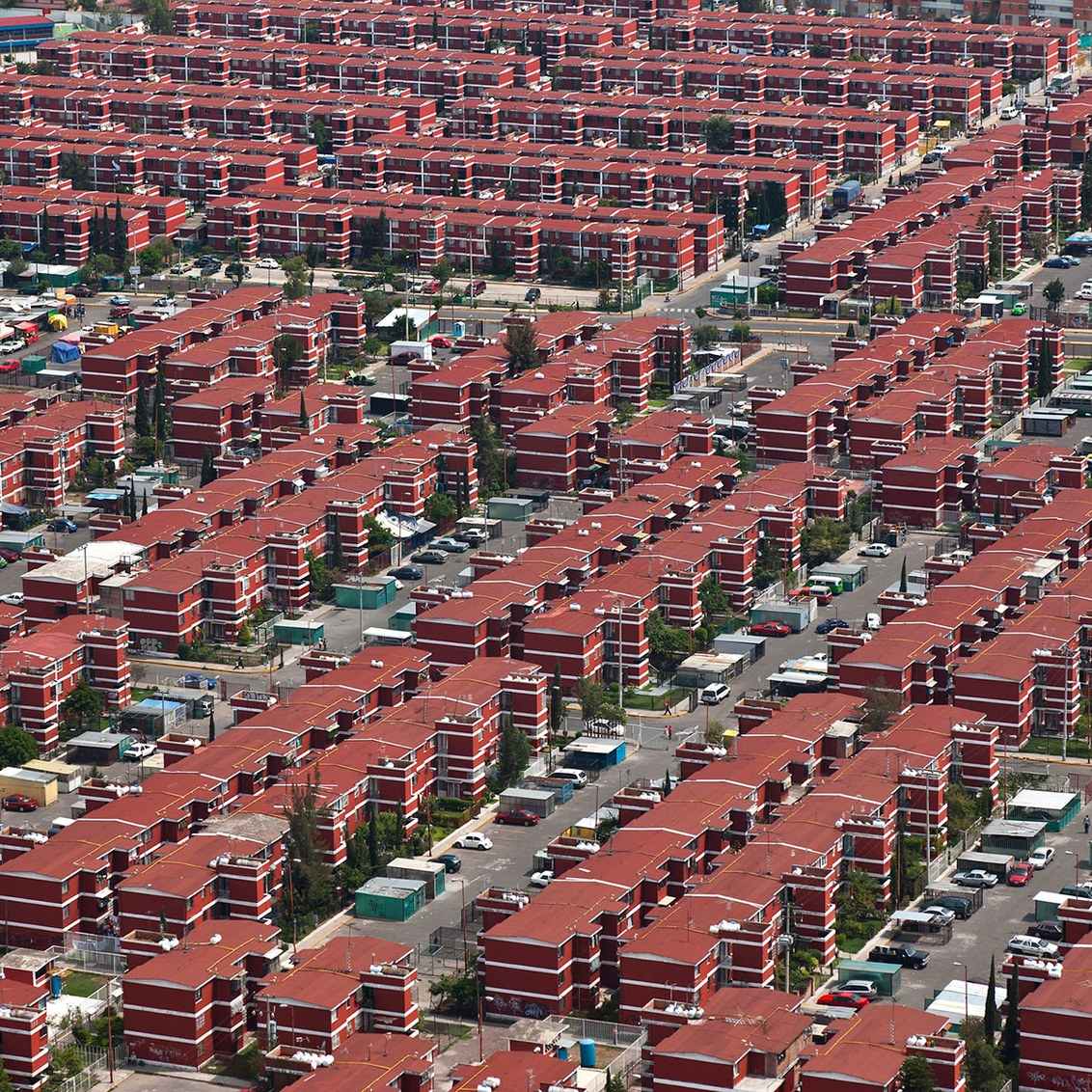 Las casas de interés social, por su parte, evocan algo verdaderamente siniestro, pero también un extraño placer para la vista que posiblemente deriva de su singular simetría. Estos atributos atrajeron al ojo del brillante arquitecto y fotógrafo mexicano Jorge Taboada, quien dedicó una exquisita serie de imágenes al análisis de estos monstruosos conjuntos de viviendas que se encuentran en las afueras de casi todas las ciudades del país.