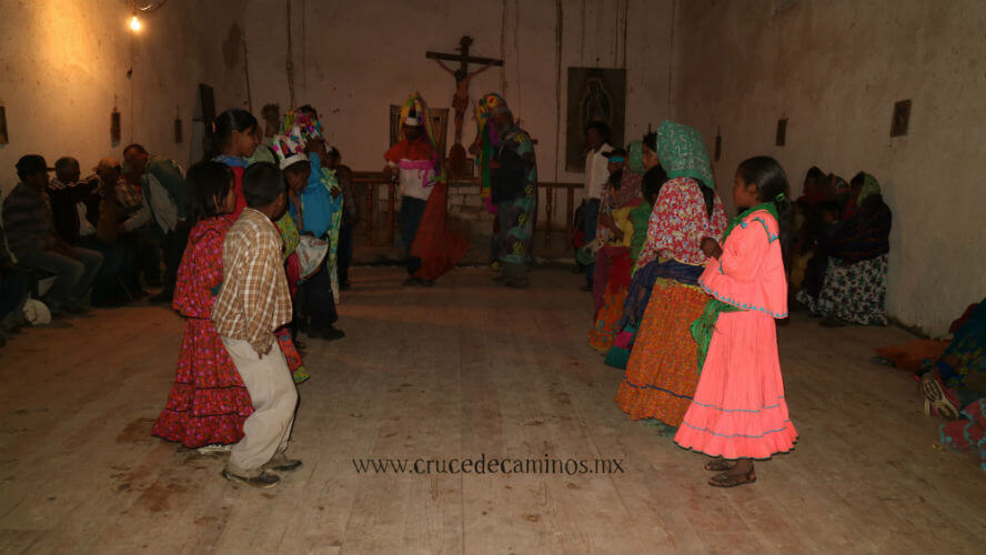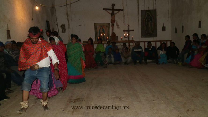 Uno de los momentos más importante de estos días llego en la víspera de la fiesta cuando miembros de las comunidades de Rowerachi, Wajurana, Porochi y Norogachi se congregaron al interior de la iglesia (cuando decimos no es en el sentido de una iglesia católica sino más bien del espacio donde se reúnen para celebrar sus fiestas), de pronto y bajo una intensa lluvia las mujeres Rarámuri llegaron y se sentaron del lado derecho, los hombres del lado izquierdo, como siempre lo han hecho, como siempre lo harán. Envolviendo su cara de asombro y de sonrisas con su chiniki (vestido), vieron como fueron entrando uno a una los Mixes, vestidos de fiesta; ellas con sus faldas y sus rebozos negros en la cabeza, y ellos con sus sombreros negros y sus jorongos de lana.
