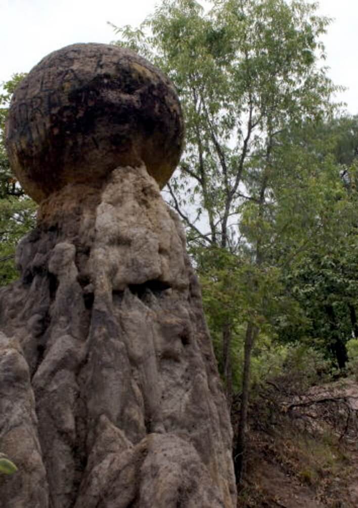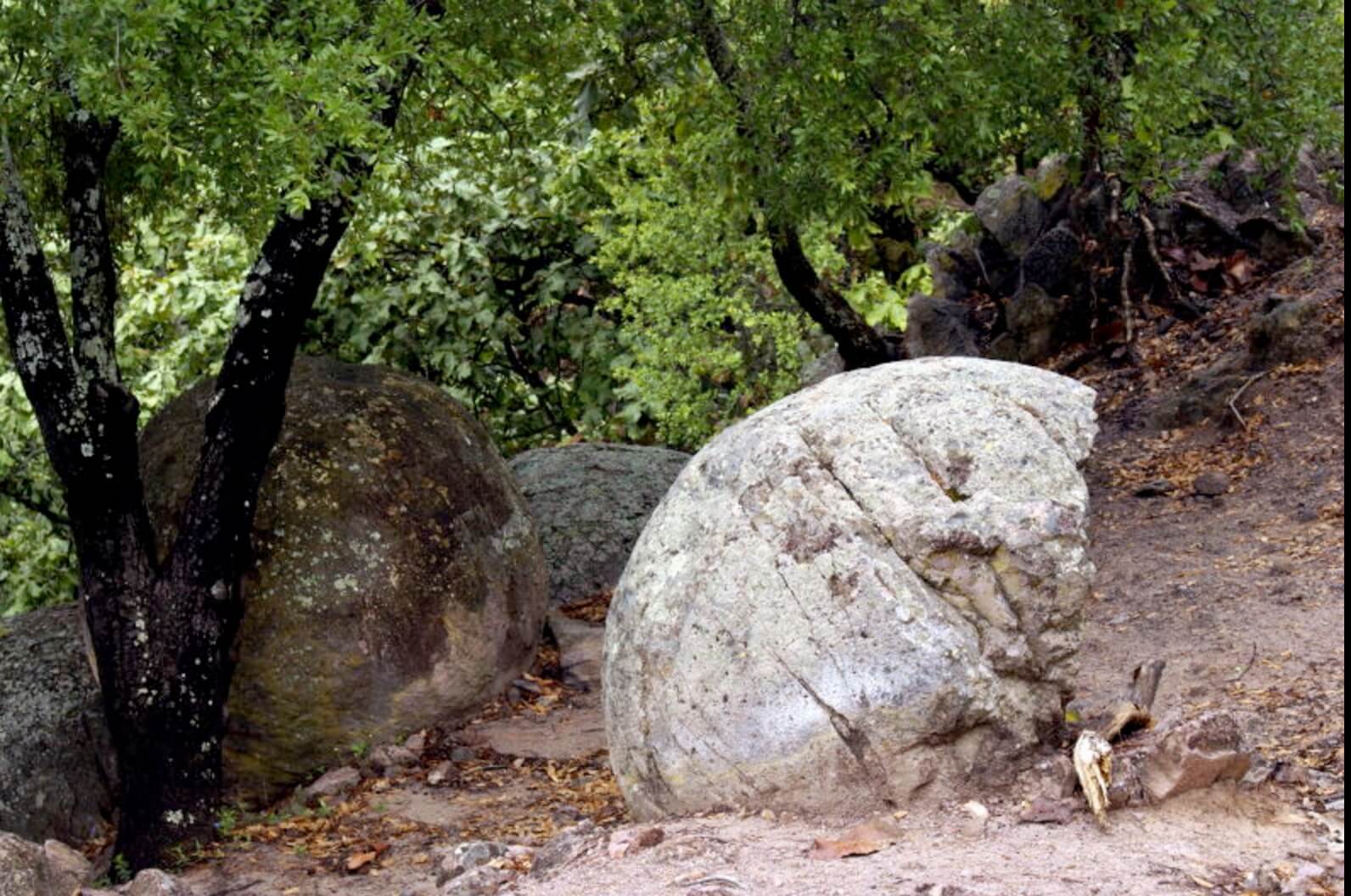 La Sierra del Águila es donde posan estas singulares y enormes rocas conocidas como Las Piedras Bola. Algunas están suspendidas sobre bases de roca verticales, como esculturas en equilibro; su hábitat ha sido decretado como un Área Natural Protegida. La mayoría de estas bolas rocosas tienen una circunferencia de unos 3.35 metros de diámetro y en número son unas 17.
