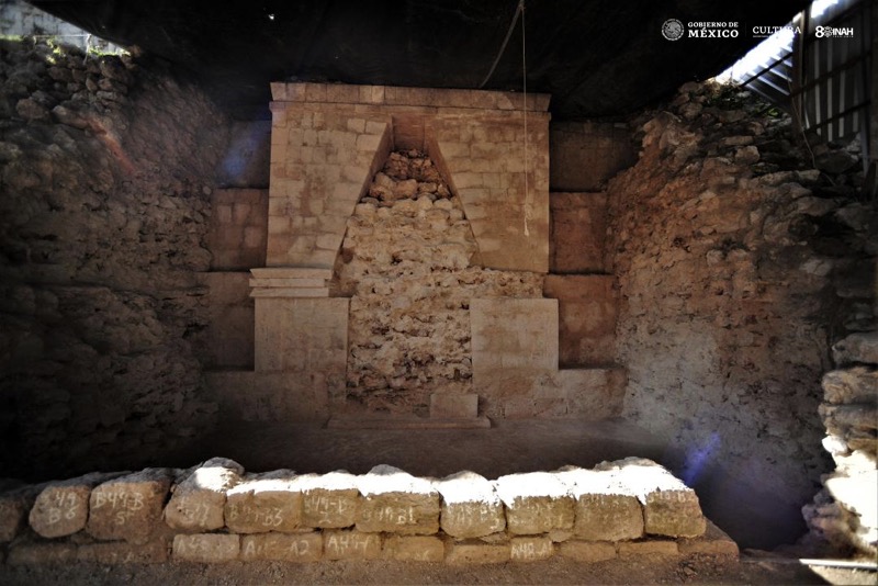 Como lo reportó el INAH, esta edificación que habita las entrañas de la otra tiene, por lo menos, 200 años más de antigüedad y revela un estilo de construcción “más temprano”; además de una costumbre preciosa propia de los mayas: la de “enterrar” a los edificios que no les servían más, en lugar de demolerlos.